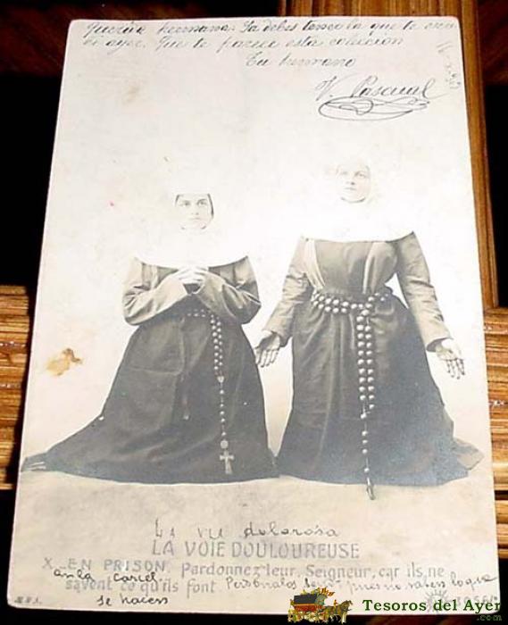 ANTIGUA POSTAL DE DOS RELIGIOSAS REZANDO POR LOS PRESOS QUE SE ENCUENTRAN EN LA CARCEL - ED.CARTA POSTALE - SIN DIVIDIR - CIRCULADA.